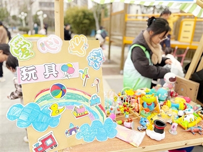 浦江湾幼儿园以班级为单位打造特色主题摊位,赋予义卖多元教育内涵。小班幼儿用环保纸盒制作“爱心盲盒”,中班“樱花里小菜农”义卖亲手种植的有机蔬菜,还有“美甲屋”设计春日限定款贴纸,“兔兔乐园”设置合影打卡、宠物互动环节,融合亲近自然、劳动教育、艺术创造与环保理念,培养沟通表达与团队协作能力。