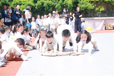 “五一”劳动节期间,毓美幼儿园举办第四届擦地板大赛,孩子们拿着扫帚、抹布“打扫教室”。活动为孩子们提供了自我展示的舞台,让幼儿在游戏化的情境中初步建立劳动观念,懂得用劳动创造美好的生活。